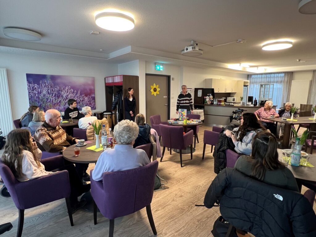 Ein besonderer Nachmittag am Mittwoch, 14. Januar, in Kooperation mit der Gemeinschaftsschule. Einmal im Monat kommen Bewohnerinnen und Bewohner vom Betreuten Wohnen und vom Pflegeheim mit Schülerinnen und Schüler von der Gemeinschaftsschule im Cafe Sonnenfeld zum Spielenachmittag zusammen. Am Mittwoch, den 14. Januar, war Uwe Rapp, Spieleautor, zu Gast. Katja Wörz, stellvertretende Schulleiterin der Gemeinschaftsschule lud Uwe Rapp zuvor in die Runde ein. Uwe Rapp hat mit seinem Autorenkollegen Bernhard Lach bisher 50 Spiele bei den unterschiedlichsten Verlagen auf den Markt gebracht. Uwe Lach hatte verschiedene Spiele dabei, die er den Anwesenden vorstellte und sogleich zum gemeinsamen Spielen einlud. Uwe Rapp war begeistert vom Miteinander der Seniorinnen und den Jugendlichen.